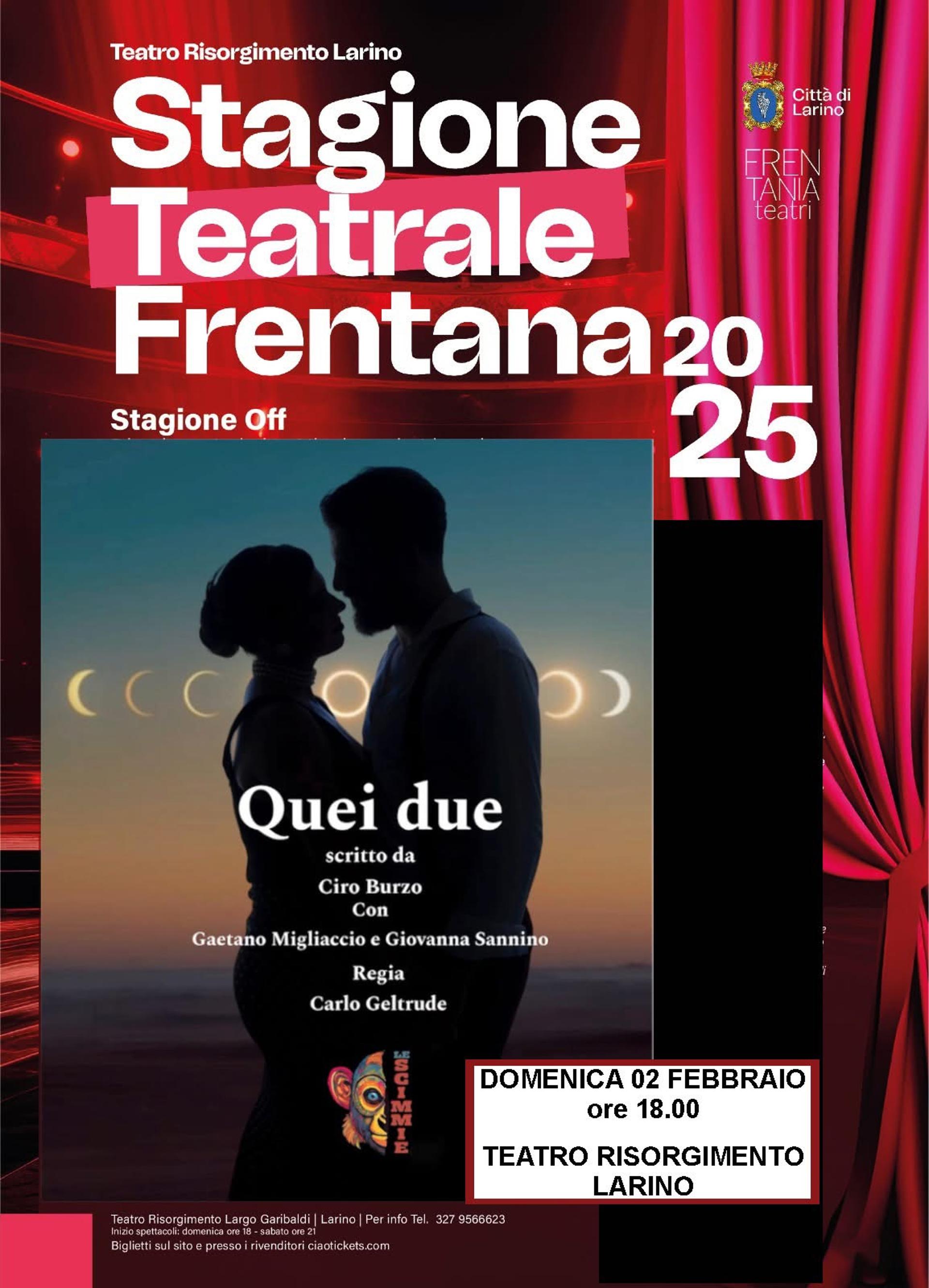 Prevendite dal lunedi al sabato presso il Teatro Risorgimento dalle 18.00 alle 20.00
